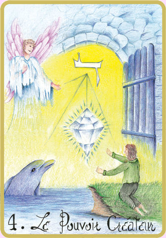 The CREATIVE POWER is the masculine principle of incarnation, participating in the four kingdoms : mineral - vegetable/animal – human - angel... the physical body possesses all the strengths of the 4 elements: earth - water - air – fire, to realize, achieve, manifest, create and transform one’s own density into pure light. The fulfillment of your creative power will strengthen your ability to assert yourself and implement projects that the feminine principle has established.